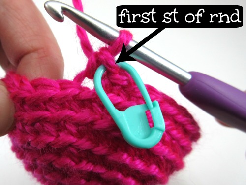 […] every round – move the marker up into the first stitch of each new round you start. Read my tutorial on marking the start of a round using a stitch marker for more detailed […]