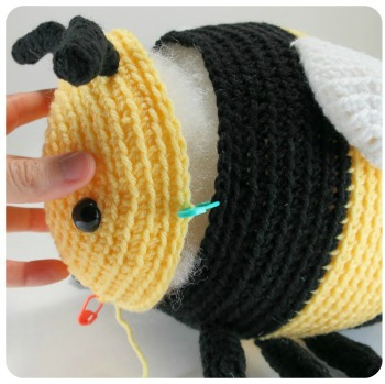 This technique works when attaching an open piece to a closed piece (as pictured above), a closed piece to a closed piece, and when attaching two open pieces together, like in my Bobby the bumble bee pattern: